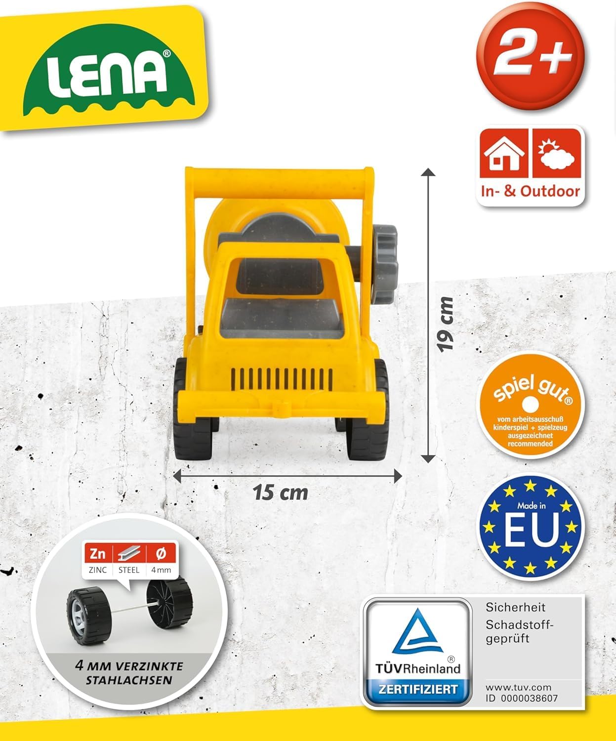 Der LENA EcoActives Betonmischer bringt echtes Baustellenfeeling ins Kinderzimmer! Mit ca. 28 cm Länge ist dieses hochwertige Spielfahrzeug perfekt für kleine Hände ab 2 Jahren geeignet.
