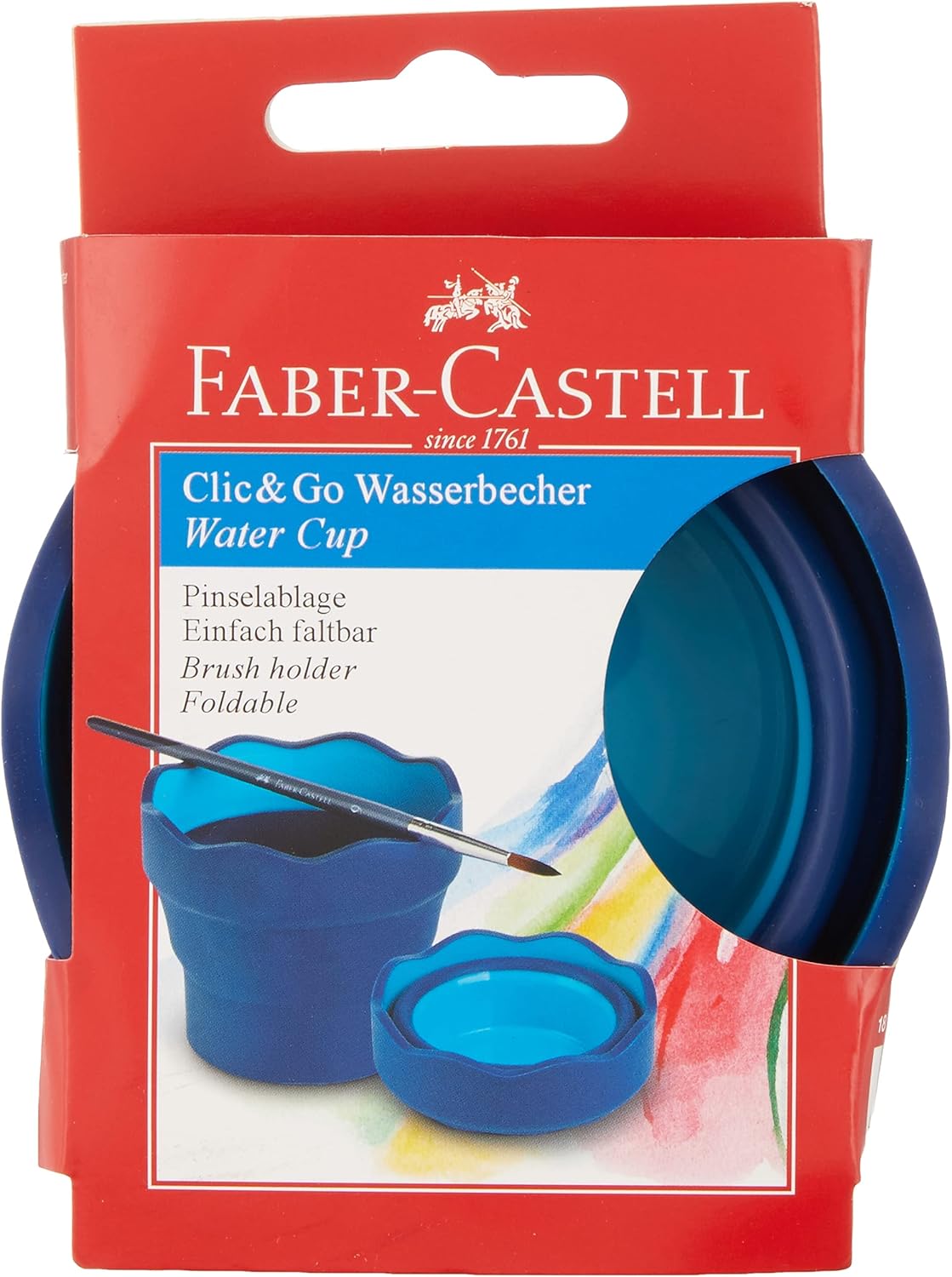 Der Wasserbecher Clic&Go von Faber-Castell in Blau ist ein innovativer, platzsparender Begleiter für alle Mal- und Bastelaktivitäten. Mit praktischem Faltmechanismus lässt er sich nach Gebrauch kompakt verstauen und ist ideal für unterwegs, Schule und zu Hause.