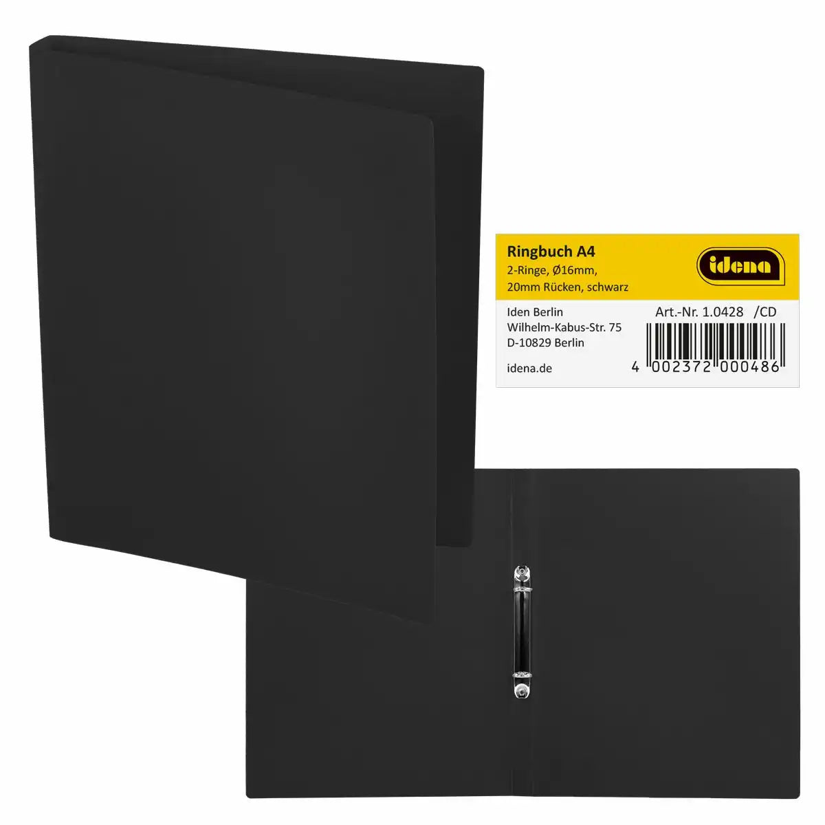 Idena Ringbuch aus Kunststoff 2 Ringe schwarz DIN A4 Rückenbreite 2cm