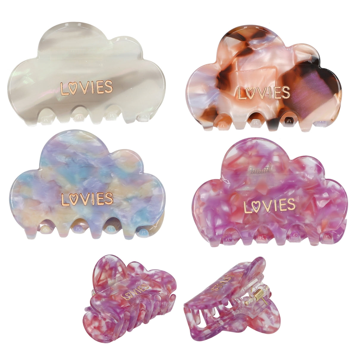 Die hübsch geschwungenen Haarklammern von LOVIES by Depesche sind in verschiedenen Farben marmoriert und ein absoluter Hingucker im Haar. Mit kleinen Anhängern mit Statement: Luck, Hugs & Kisses, Love, Happy.