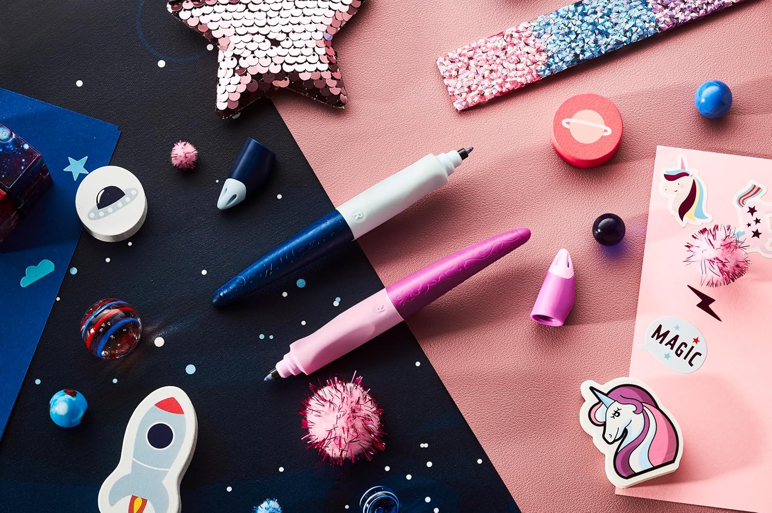 - 1 x STABILO EASYoriginal 3D Tintenroller (blau, Design: Weltall, für Rechtshänder)