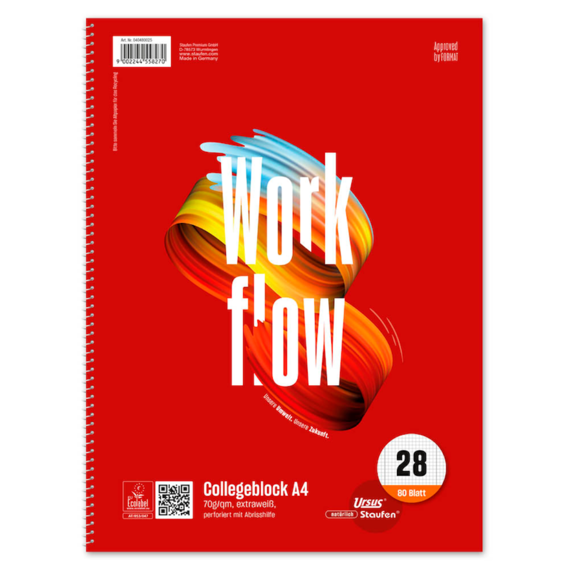 Staufen Collegeblock Style Workflow Lineatur 28 kariert mit Doppelrand 80 Blatt 70g/m² DIN A4