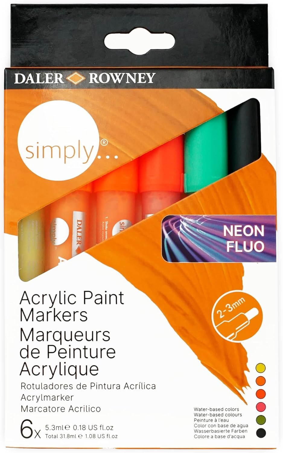 Daler Rowney Acrylmarker Set - 6 leuchtende Neonfarben für kreative Projekte