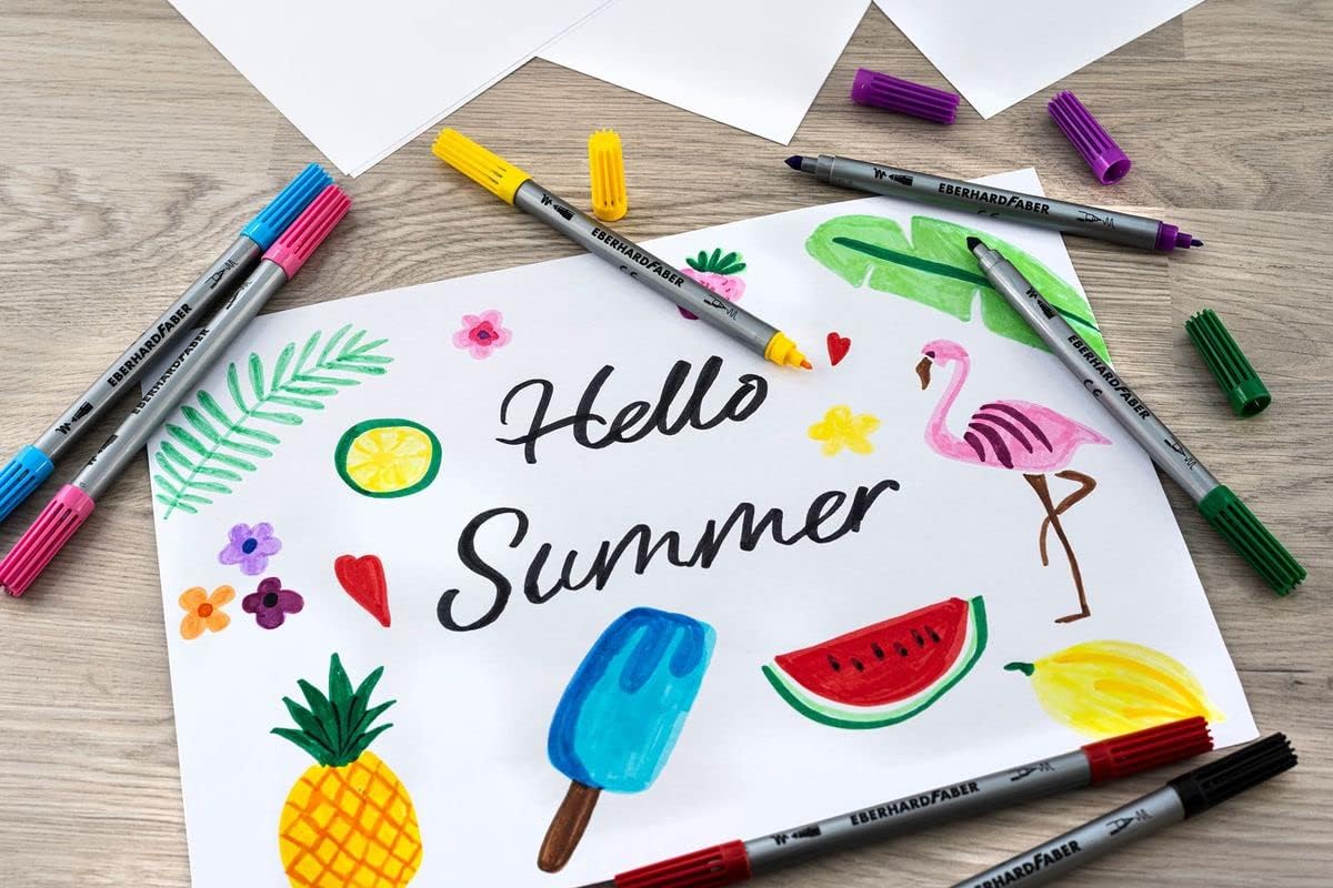 Die Doppelfasermaler von Eberhard Faber bieten maximale Flexibilität beim Zeichnen und Malen. Mit zwei unterschiedlichen Spitzen in einem Stift können Kinder und Erwachsene sowohl feine Details als auch großflächige Farbflächen gestalten.