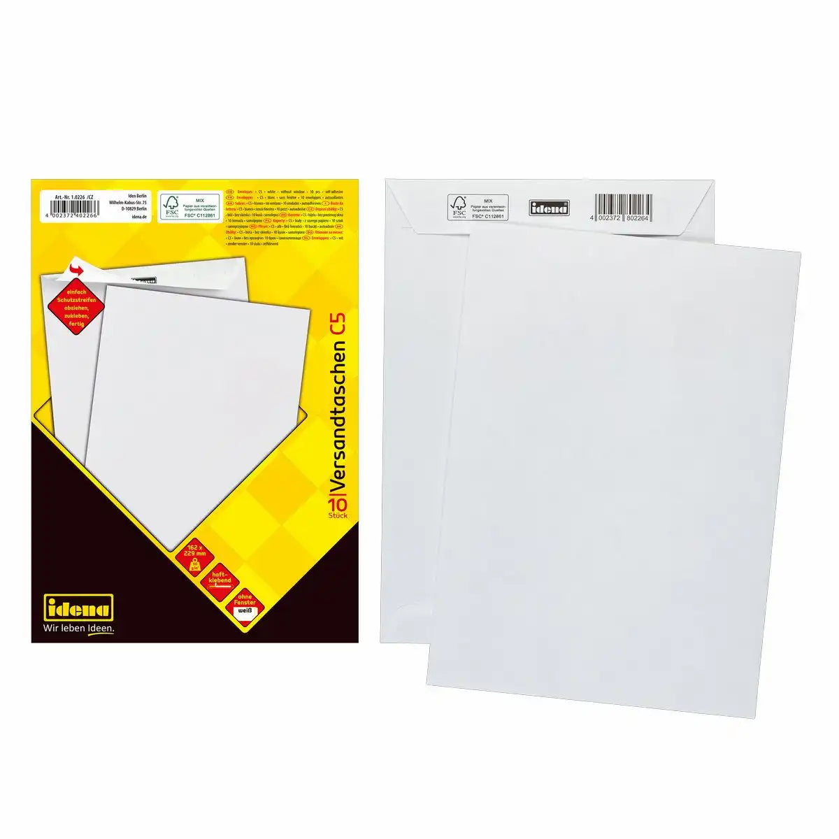 Idena Versandtaschen DIN C5 ohne Fenster haftklebend 90g/m² weiß - 10 Stück
