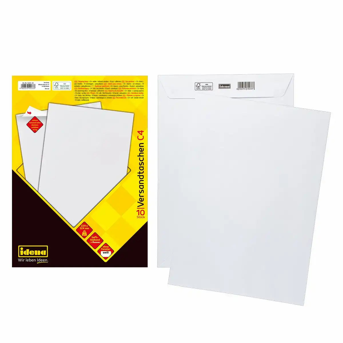 Idena Versandtaschen DIN C4 ohne Fenster haftklebend weiß 100g/m² - 10 Stück