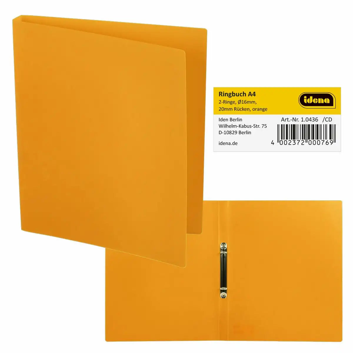 Idena Ringbuch aus Kunststoff 2 Ringe orange DIN A4 Rückenbreite 2cm