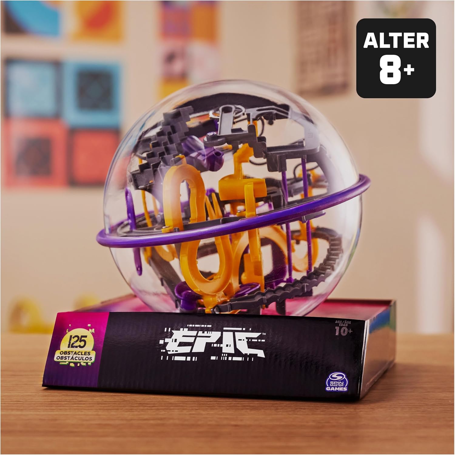 Das Perplexus Epic ist ein faszinierendes 3D-Kugellabyrinth mit 125 kniffligen Hindernissen und 360° Bewegungsfreiheit. Durch Kippen, Drehen und Neigen der transparenten Kugel navigierst du die Kugel durch Serpentinen, Sprungrampen und Doppeltreppen – ein Geduldsspiel, das Konzentration, Geschicklichkeit und Hand-Augen-Koordination trainiert.