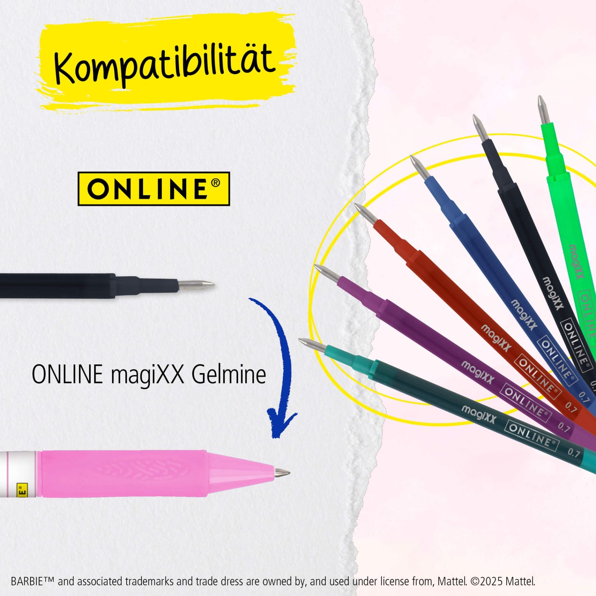 Dein stylischer Begleiter für Schule, Hausaufgaben und kreatives Schreiben: Dieser radierbare Gelschreiber im traumhaften Barbie-Design macht jedes Federmäppchen zum Hingucker! Du erhältst das Radio Design aus 6 verschiedenen Barbie-Motiven – jeder Stift ist ein süßes Überraschungs-Highlight.