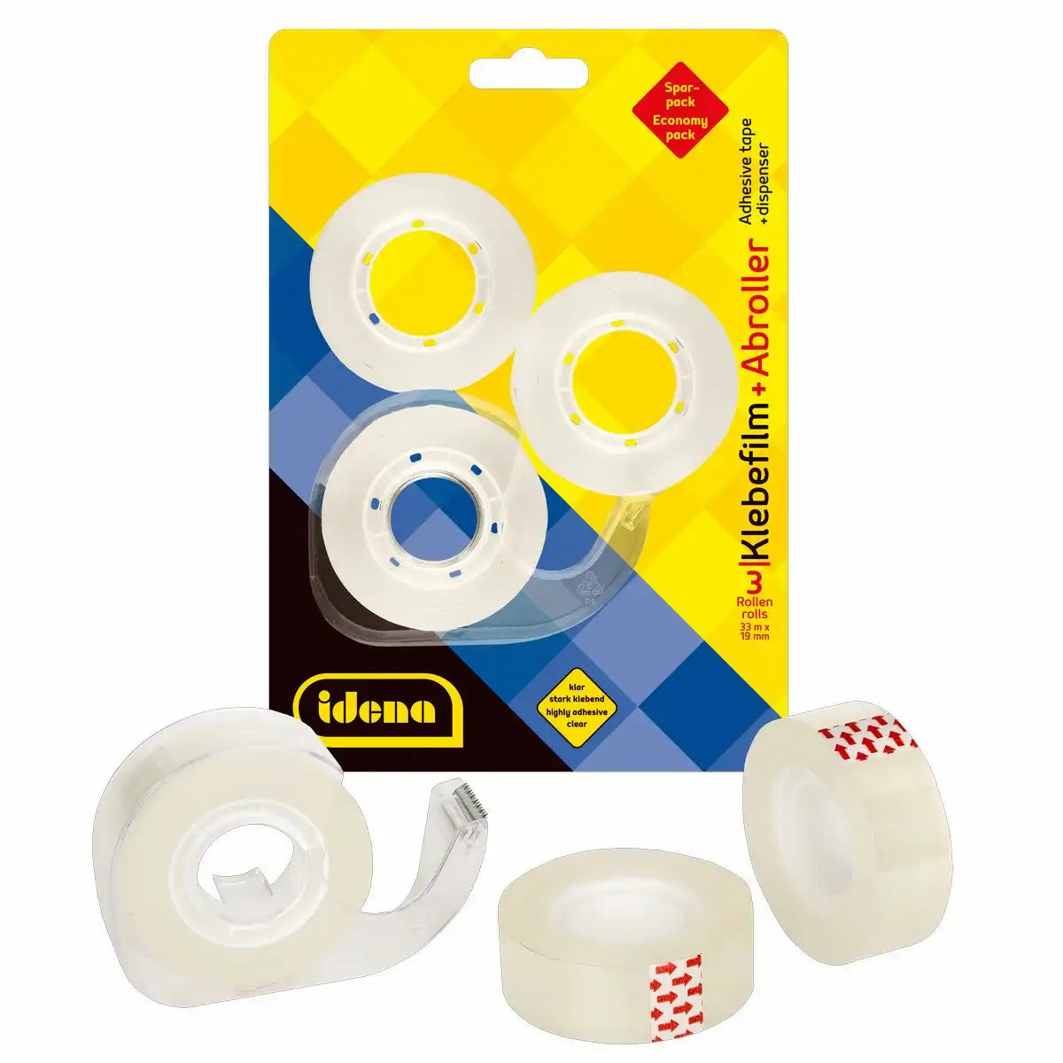 Idena Klebeband transparent mit Abroller 19mm x 33m - 3 Stück Set