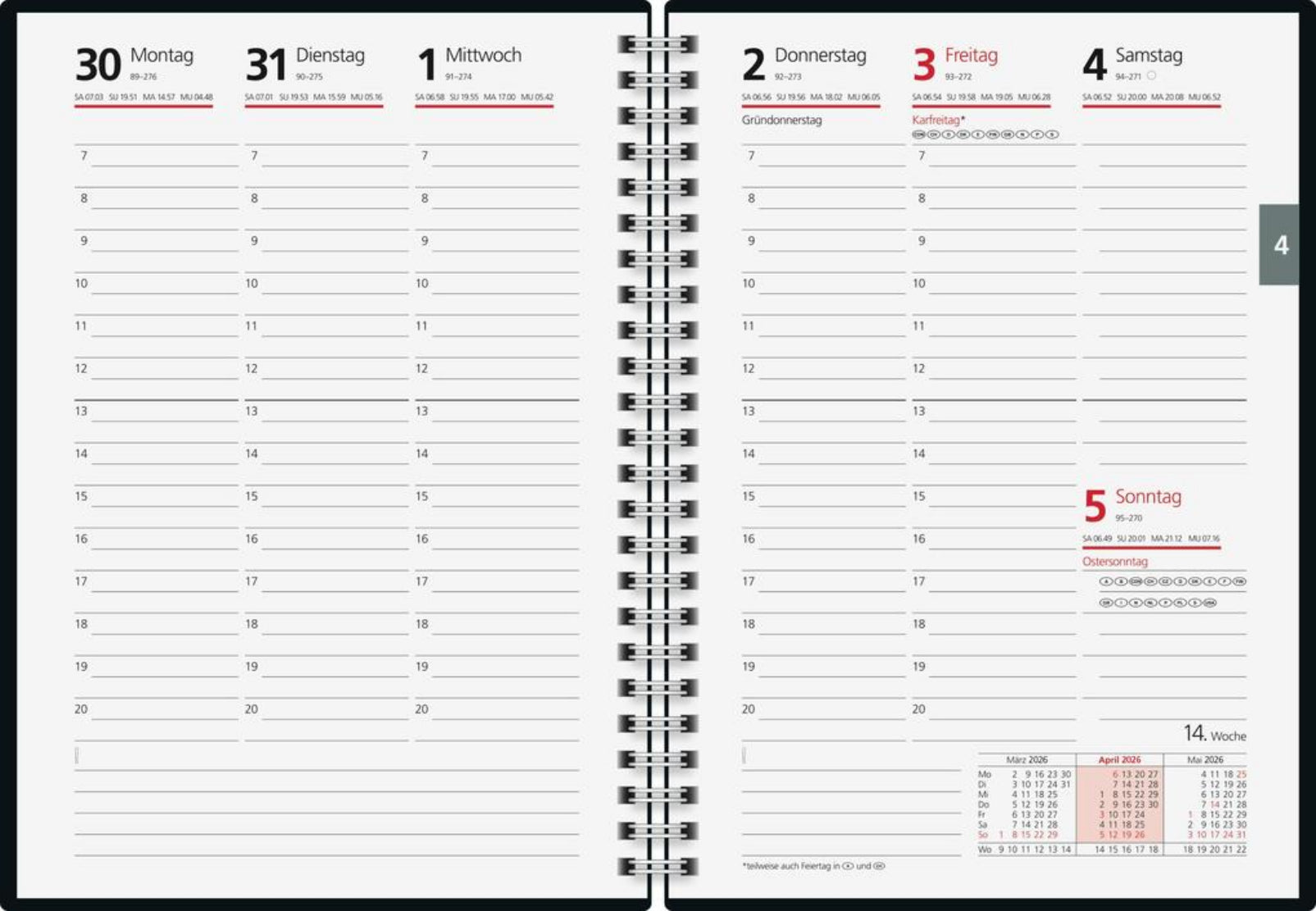 Erleben Sie, wie dieser Kalender Ihren Arbeitsalltag strukturiert und gleichzeitig durch sein ansprechendes Design überzeugt. Die robuste Wire-O-Bindung sorgt für Langlebigkeit, während das petrolblaue Cover einen professionellen Eindruck macht.
