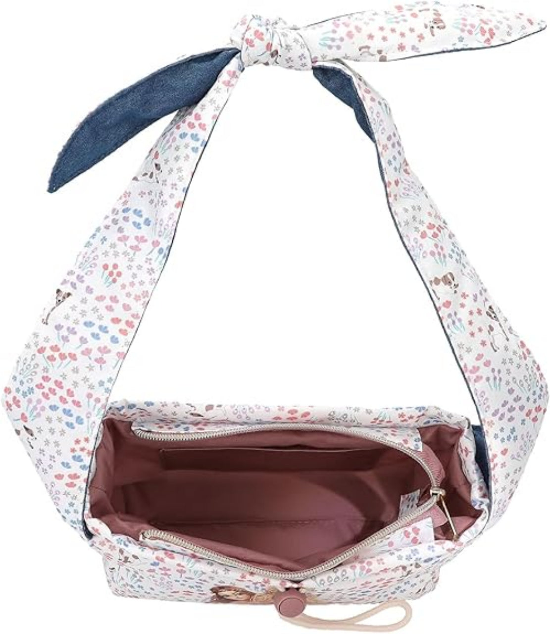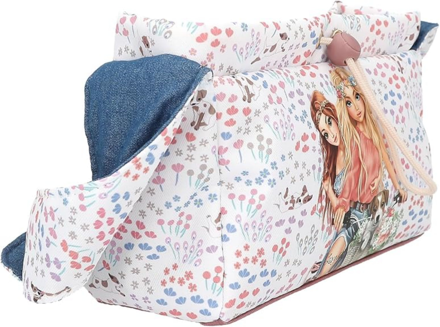 Die TOPModel Velo Fleur Handtasche in Weiß und Blau ist der perfekte Begleiter für Schule, Freizeit und Ausflüge. Mit ihrem bezaubernden Model-Motiv und romantischem Blumenmuster wird sie zum absoluten Hingucker.