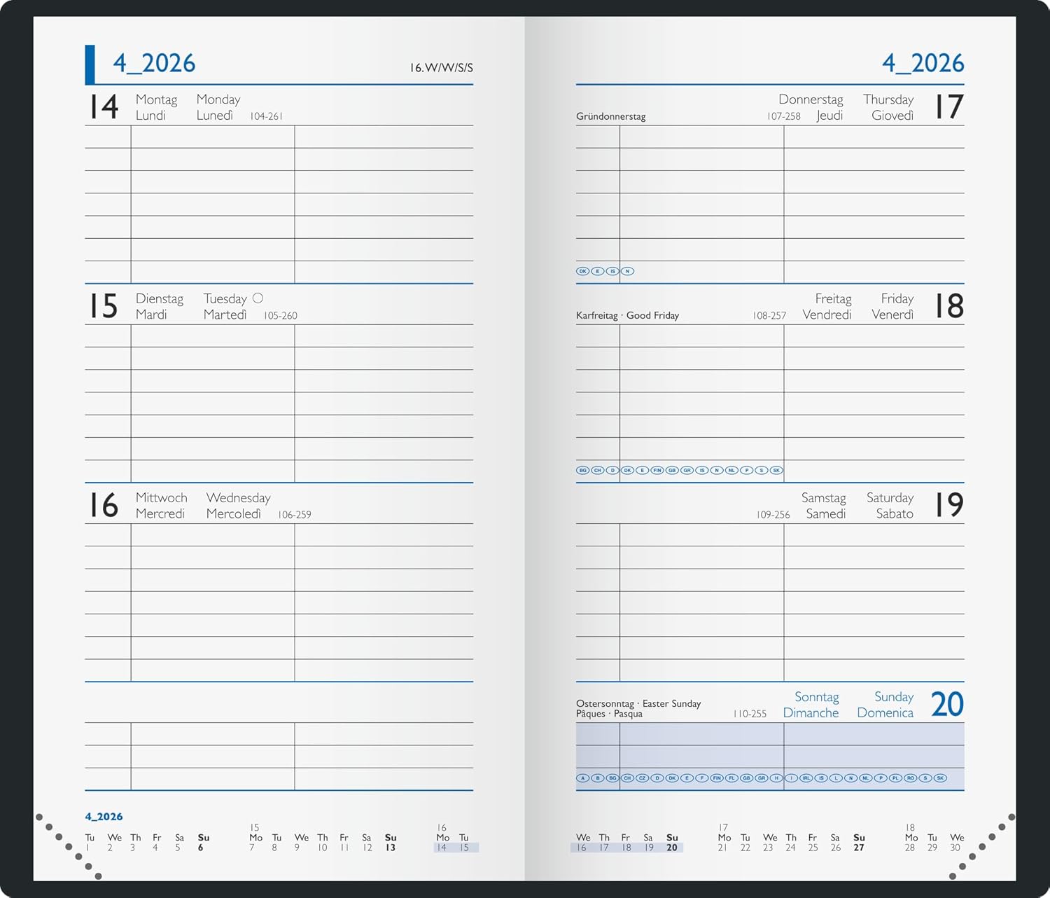 Taschenkalender 2026 Modell 756 - Viersprachiger Wochenplaner schwarz