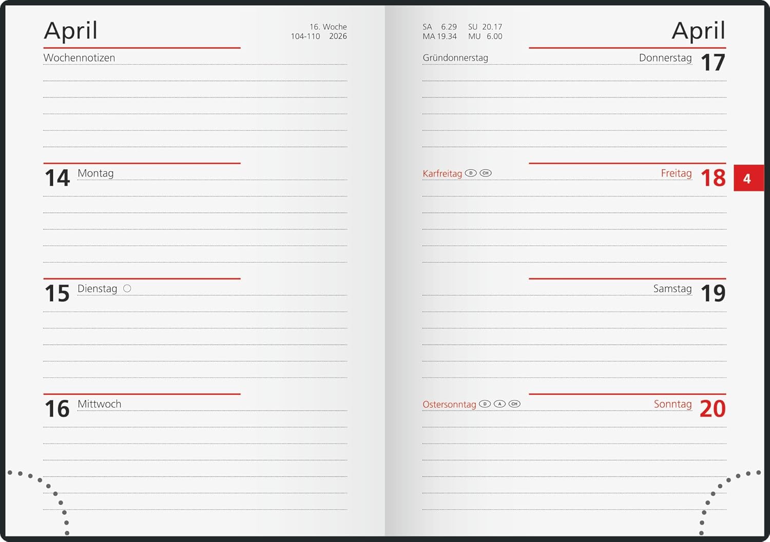 - Wochenplanung: 2 Seiten = 1 Woche für optimale Übersichtlichkeit