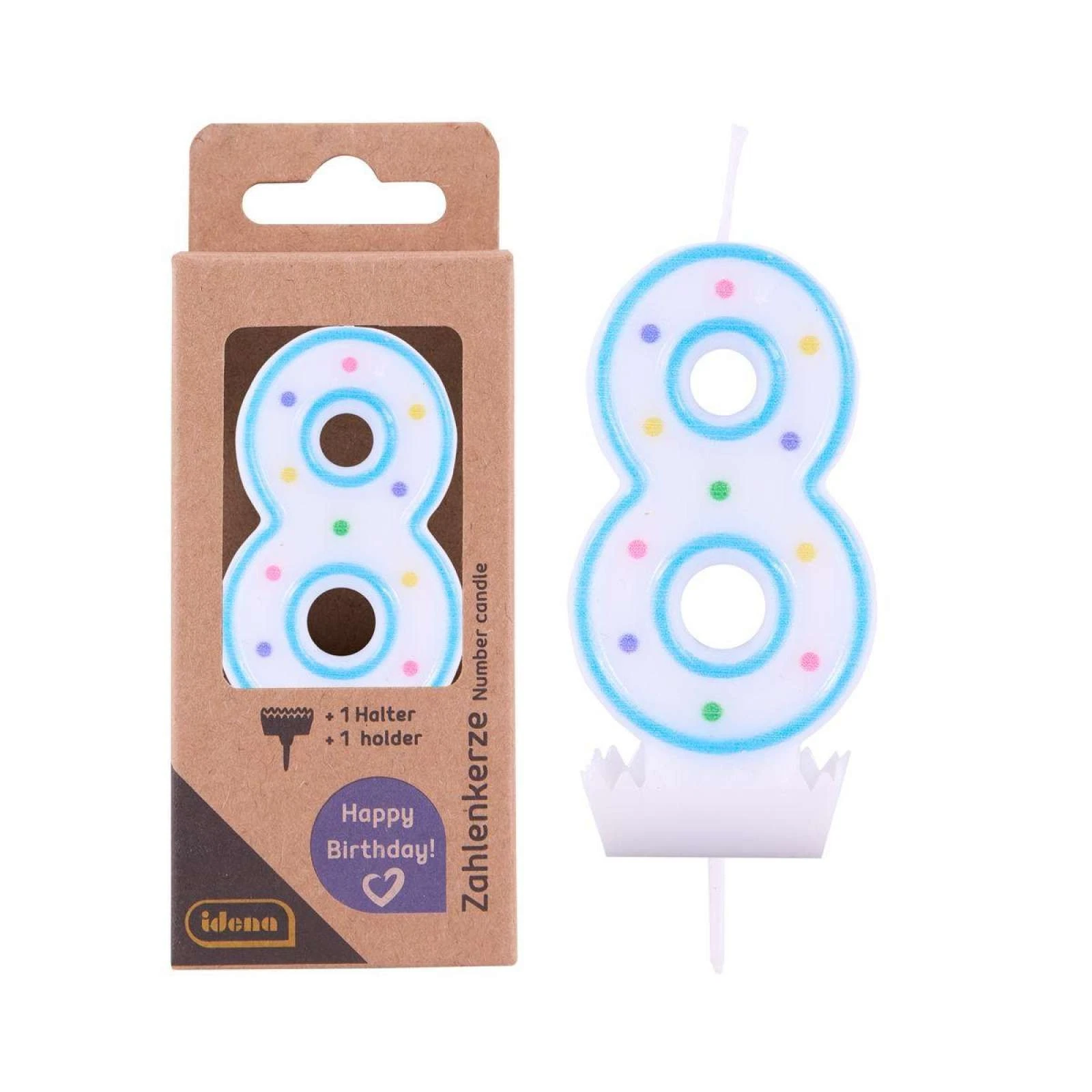 Zahlenkerze 8 in Hellblau - Geburtstagskerze